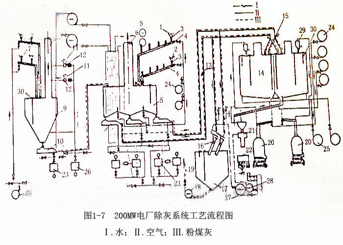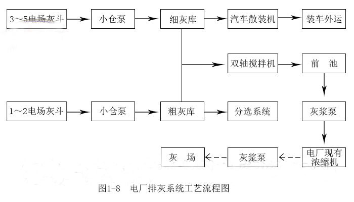 圖1-7是該廠除灰系統工藝流程圖。